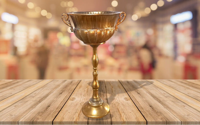 Ânfora alta dourada trabalhada